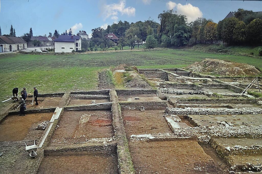 Bereits ab der Mitte des 19. Jahrhunderts fanden sich südlich der Stadlgasse im Bereich des Schlossparks Hohenlohe und des Meierhofes Plochberger mehrere römische Steindenkmäler und Urnen. Aber erst mit ersten umfangreichen Ausgrabungen in den 1970er Jahren wurde die Gelegenheit ergriffen, sich diesem Fundplatz auch archäologisch näher zu widmen.